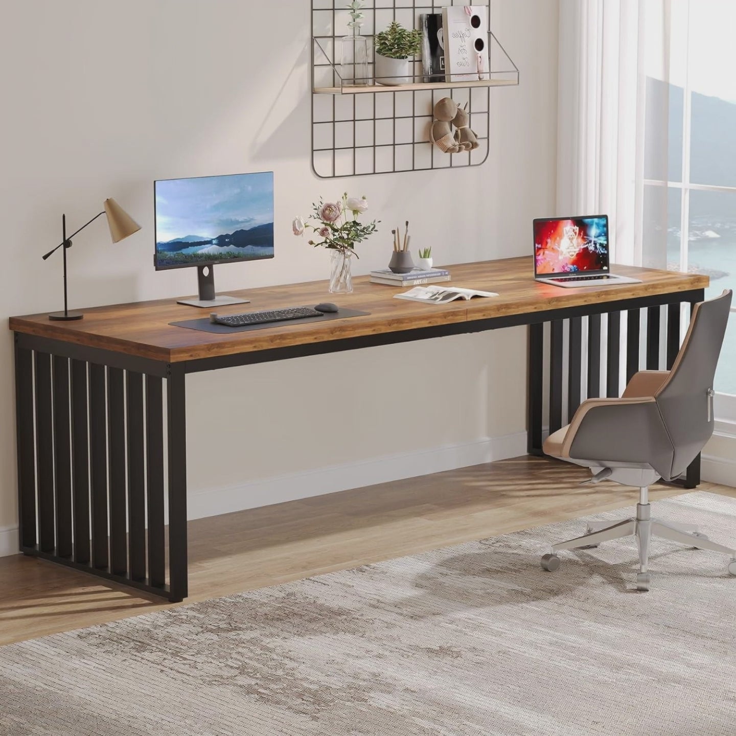 Con un tablero de 200 × 70 cm aprox., proporciona espacio más que suficiente para notebooks, monitores, libros y documentos. El refuerzo metálico bajo la cubierta mejora la firmeza y evita deformaciones.