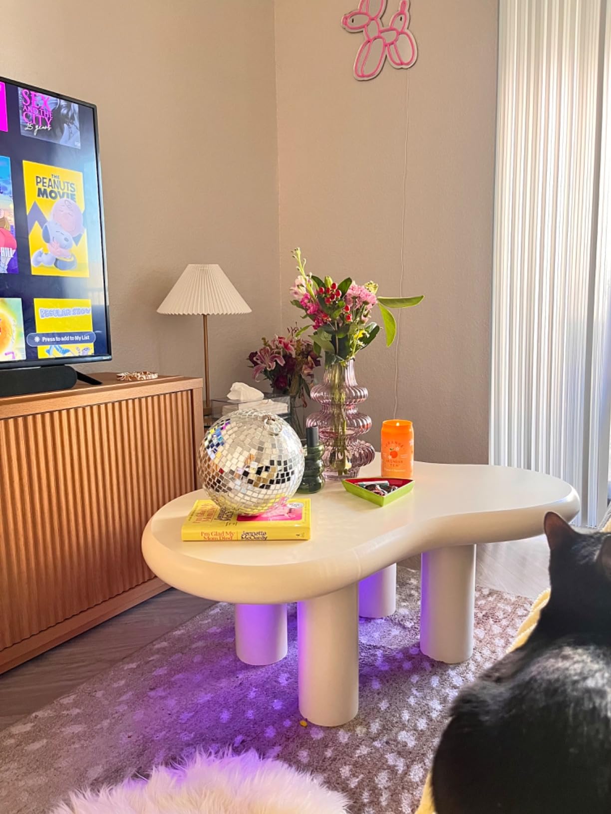 Dale un toque divertido y acogedor a tu hogar con esta encantadora mesa de centro en forma de nube. Su tono blanco cremoso crea una atmósfera cálida, mientras que su diseño liviano y poético aporta un estilo moderno y original a cualquier espacio.